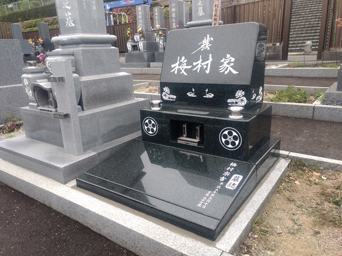 洋型墓石は、横長で高さが低く、どっしりとした形状が特徴です。最近では、墓石に好きな文字を彫刻するなど、デザイン性にこだわる方も増えています。